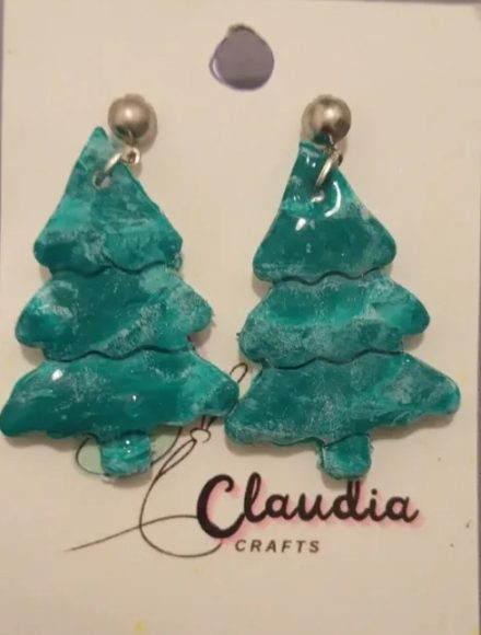Arracades artesanes en forma d’arbre de Nadal, de color turquesa translúcid amb acabat brillant i tancament platejat. Lleugeres, elegants i perfectes per a un look festiu modern.