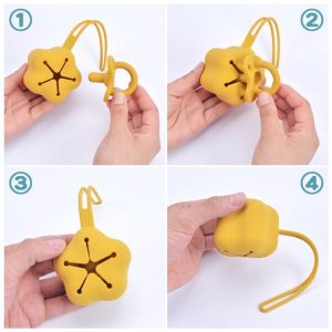 La caixa per a xumet o estoig, està fet de silicona alimentària, s’usa per guardar les cosetes dels nadons, com xumet, mossegador, o cadena de xumet per mantenir netes i segures.