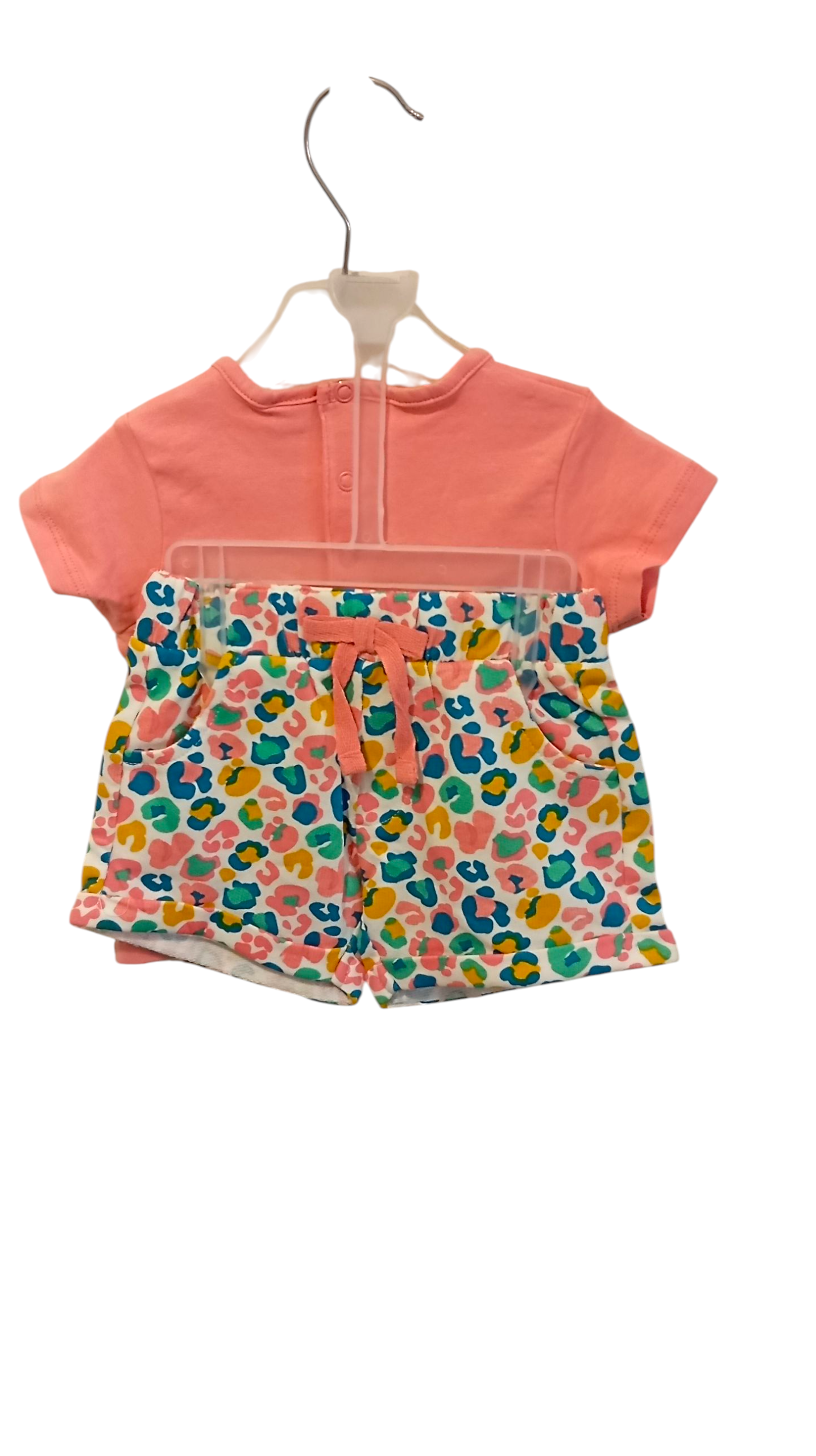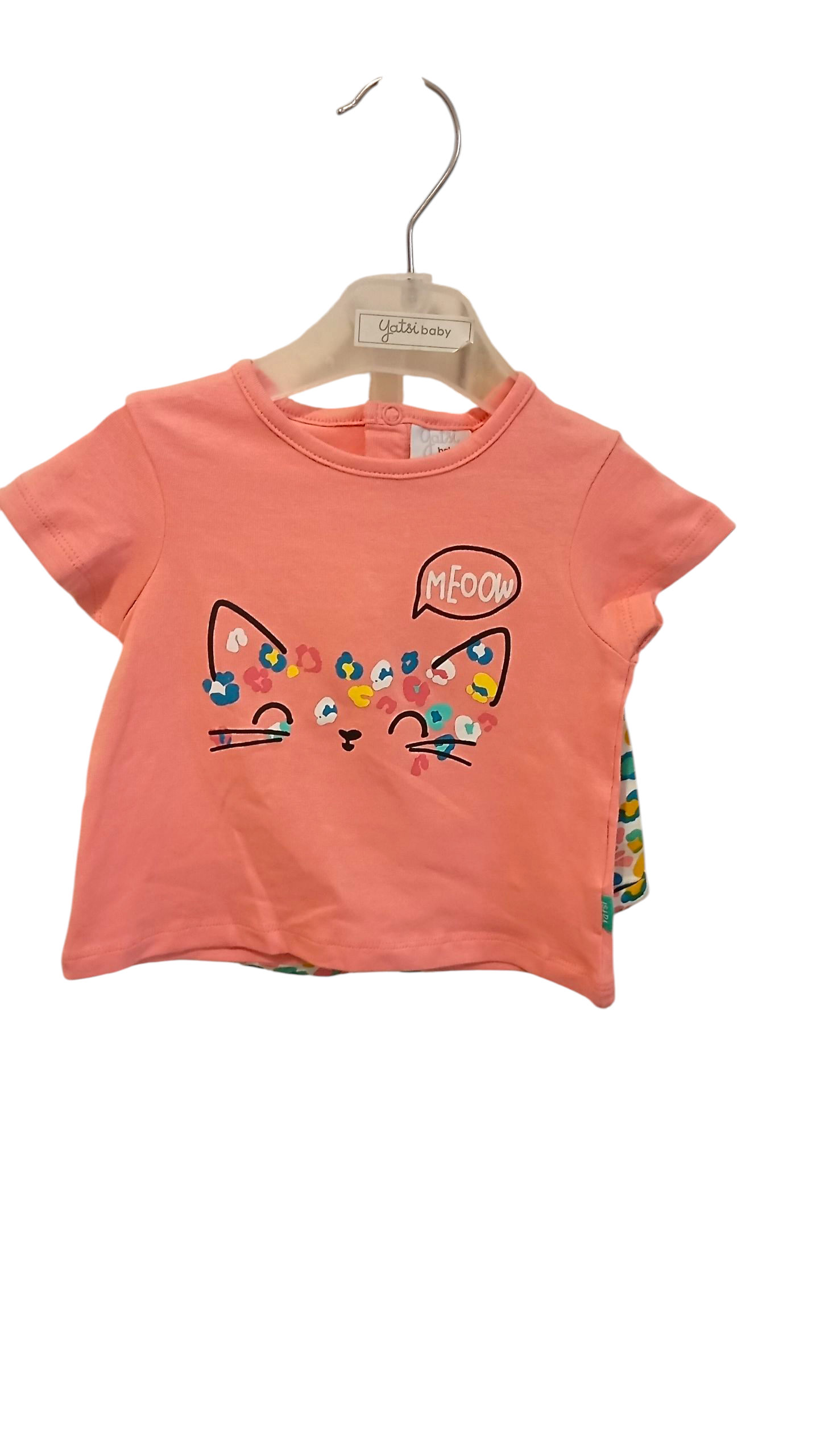 Conjunt Samarreta de màniga curta amb coll rodó i pantalons curts de punt de cotó elàstic. Impressió de gat Pantalons curts estampat amb taques de colors Cintura elàstica Samarreta amb obertura amb botons de pressió.