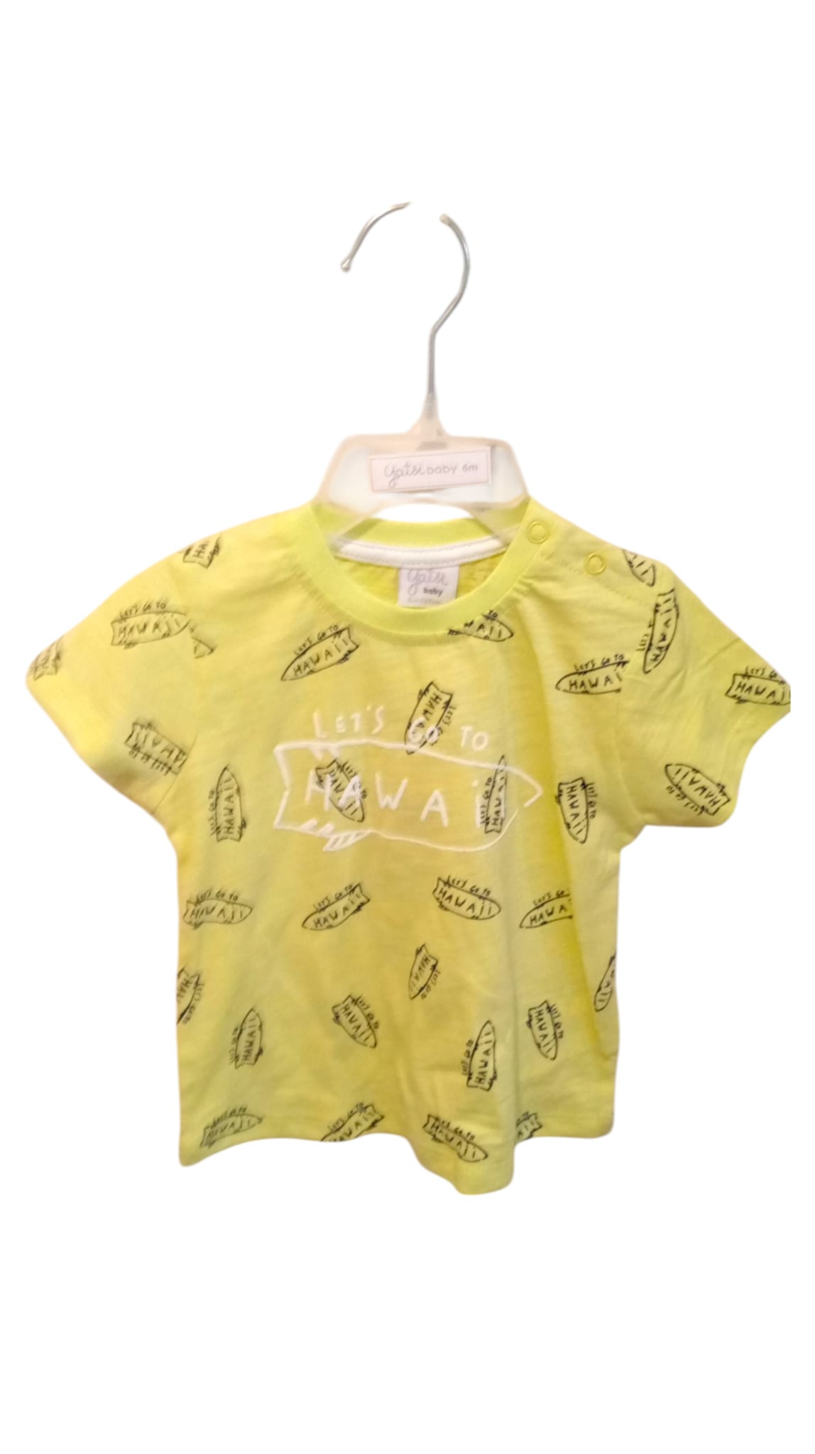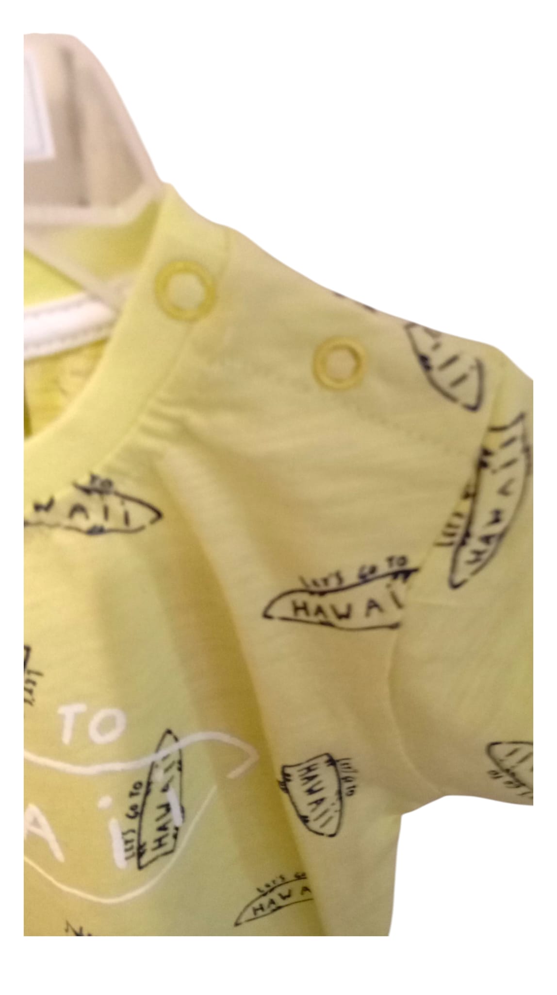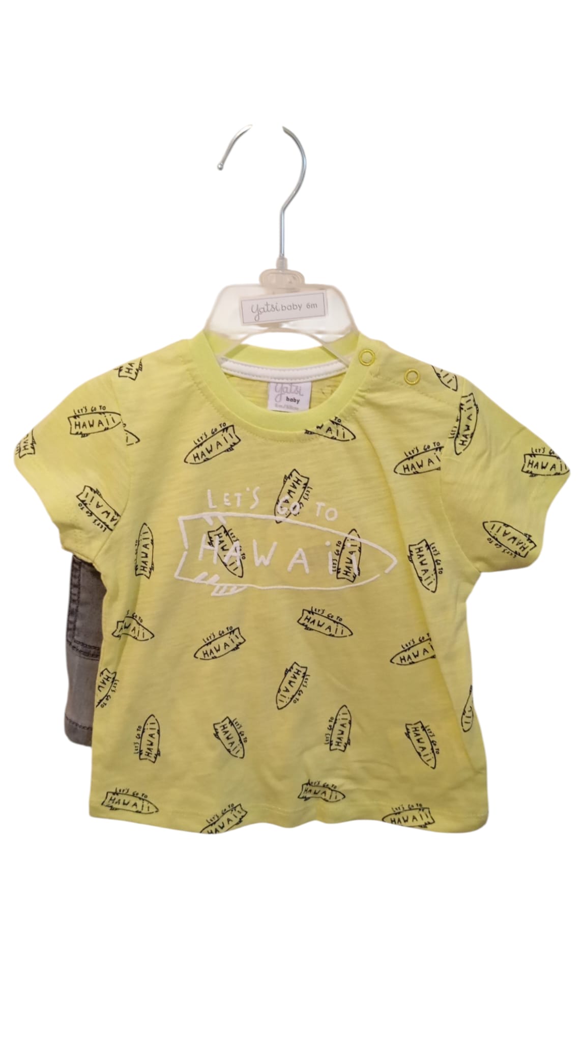 Conjunt estiu samarreta màniga curta i pantalons curts texans. Samarreta de màniga curta amb impressió temàtica Hawaii. Texans curts color gris. Cintura elàstica.