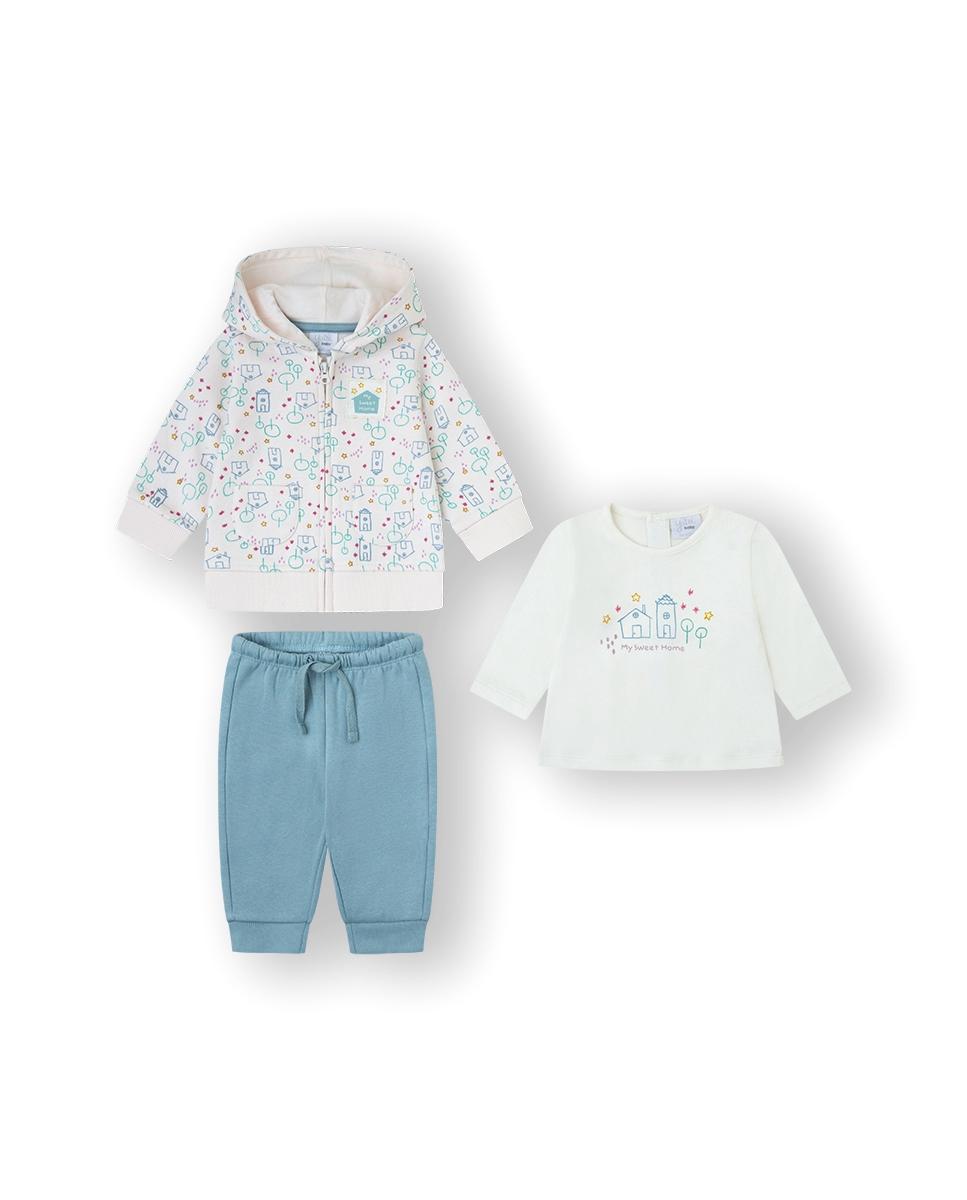 Xandall nadó nena 3 peces My Sweet Home Compost per: Dessuadora pelfa estampada amb cremallera Caputxa i dues butxaques. Samarreta amb dibuix al davant i obertura a l’esquena. Pantalons de pelfa amb goma a la cintura. Marca: Yatsi