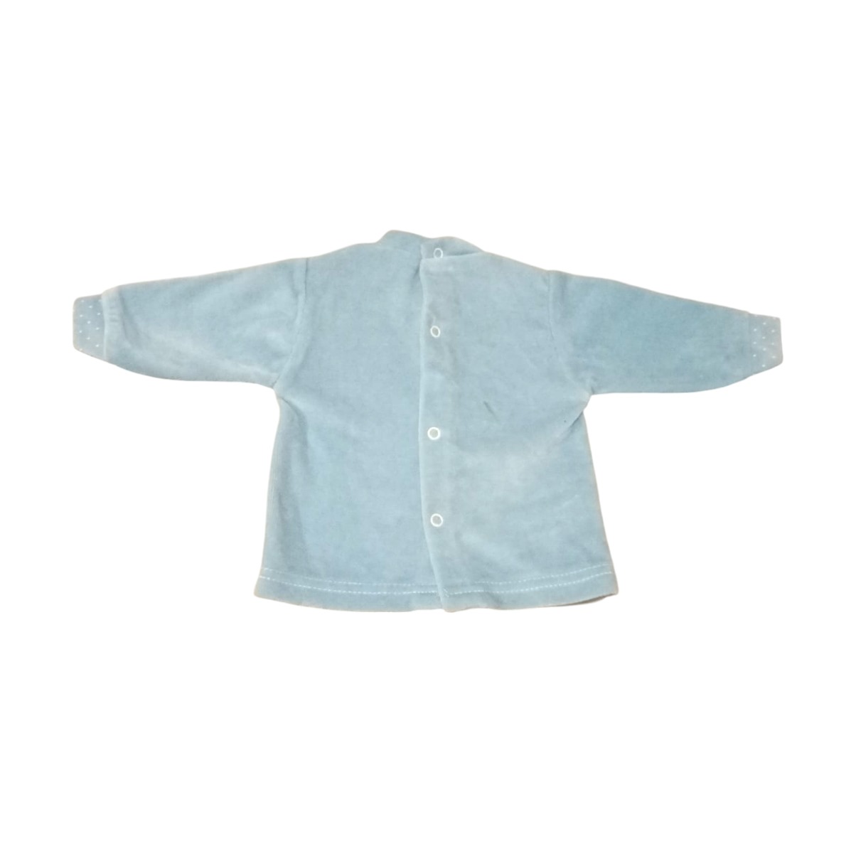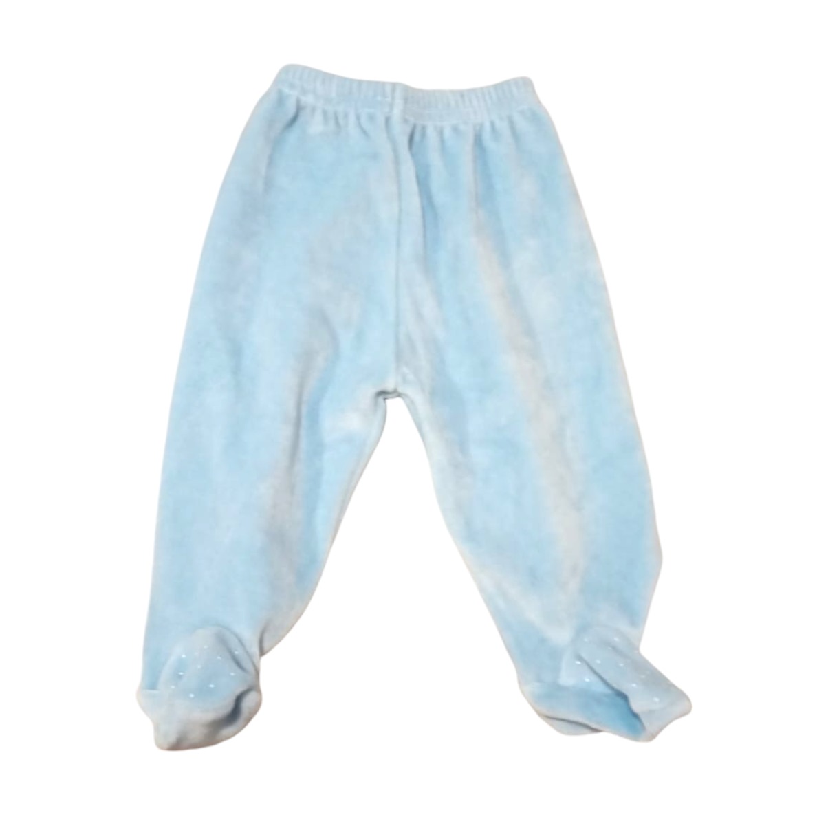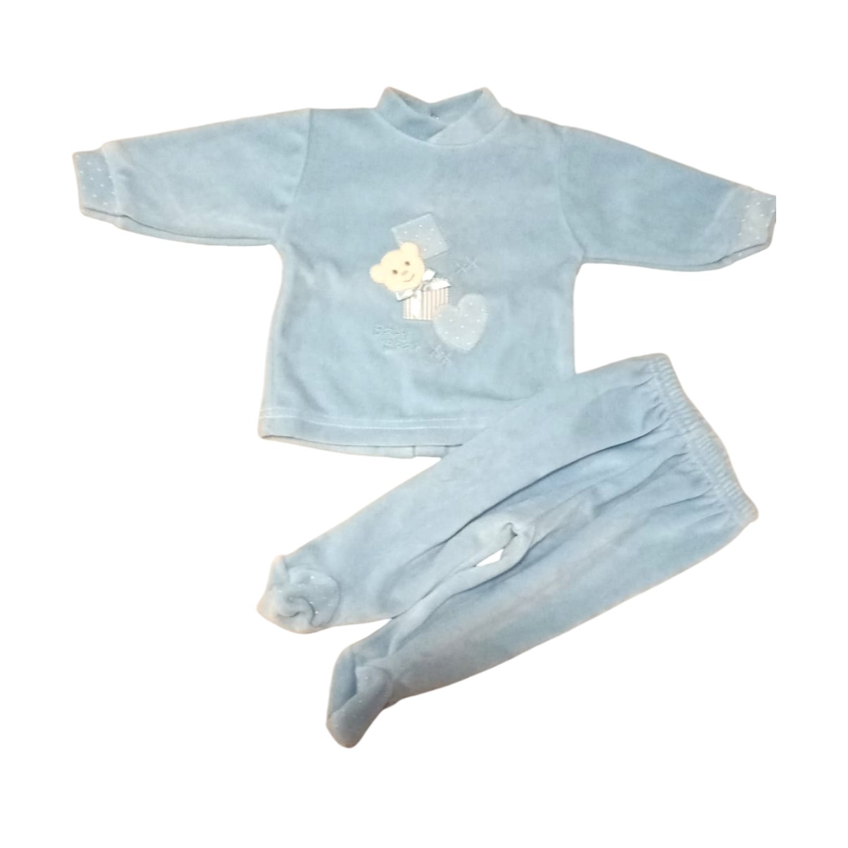 Pijama de vellut suau i còmode: 2 peces Samarreta de vellut suau de color blau cel amb un osset estampat. Pantalons/polaines del mateix color amb peücs. Cintura elàstica Botons a pressió darrera l’esquena. Talla: 1m.