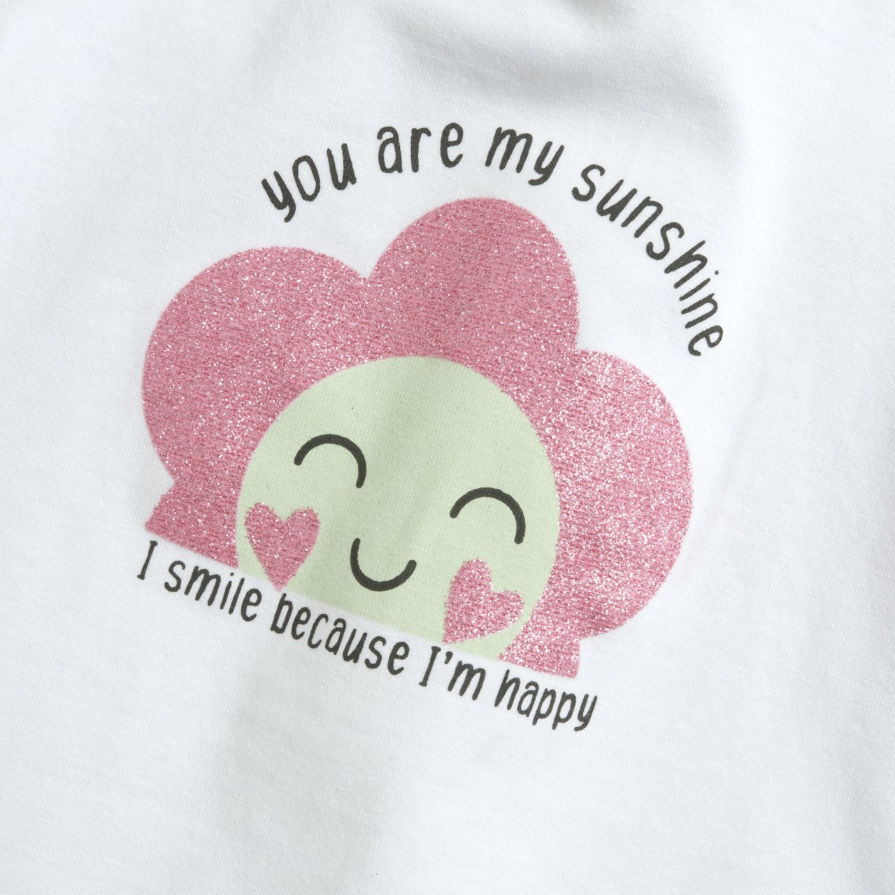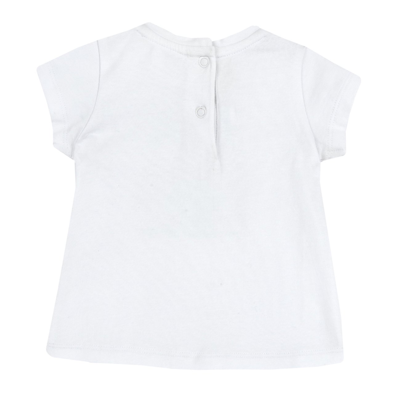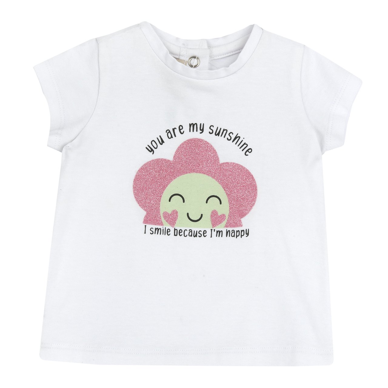 Samarreta de màniga curta de punt de cotó elàstic. Els nens creixen i Chicco creix amb ells. Estampat amb efectes de flors i purpurina. Cotó sostenible. Obertura a la part posterior amb botons automàtics.