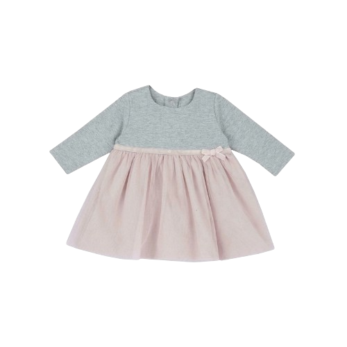 Vestit de còctel-Rosa Nena Chicco: Part superior gris de màniga llarga Faldilla rosa de tul Llaç rosa de pana Talla 18m