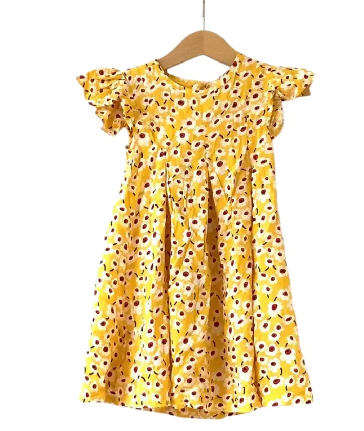 Vestit Groc de màniga curta Babybol. Disseny alegre amb estampat floral Tall ample, ideal per a l’estiu Perfecte per a esdeveniments especials o per al dia a dia