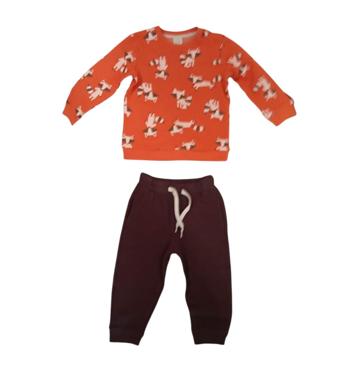Xandall nadó nen. Compost per: Dessuadora de pelfa estampada. Coll rodó ribetejat. Pantalons amb goma i cordó a la cintura. Goma elàstica en punys. Color: Vermell